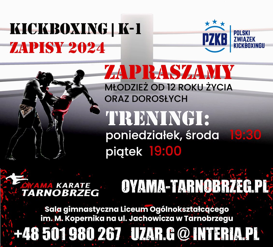 Nasz klub posiada licencje Oyama PFK oraz jako jedyny w Tarnobrzegu licencje Polskiego Związku Kickboxingu💪🥊.